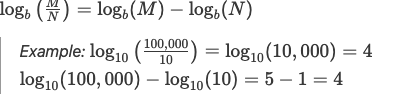 106=1,000,000106=1,000,000 (a million) → log⁡10(1,000,000)=6log10​(1,000,000)=6