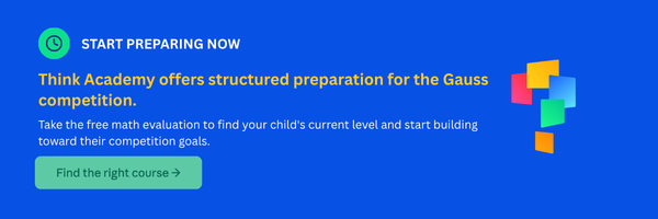 Topics covered include number theory, algebra, geometry, counting, and probability at a middle school level. Questions require logical reasoning and creative problem-solving rather than just curriculum recall. Many students find that strong school performance does not fully prepare them for the Gauss — specific competition preparation makes a meaningful difference to results.